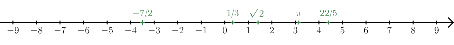 When we say “numbers” we mean the real numbers, all the infinitely-many numbers on the real number line. This includes the integers (whole numbers) and rational numbers (fractions), as well as all the more exotic numbers in between.