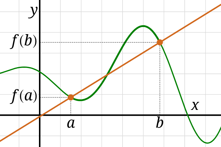 between \(x=a\) and \(x=b\) is \[ \frac{f(b)-f(a)}{b-a}\,. \]