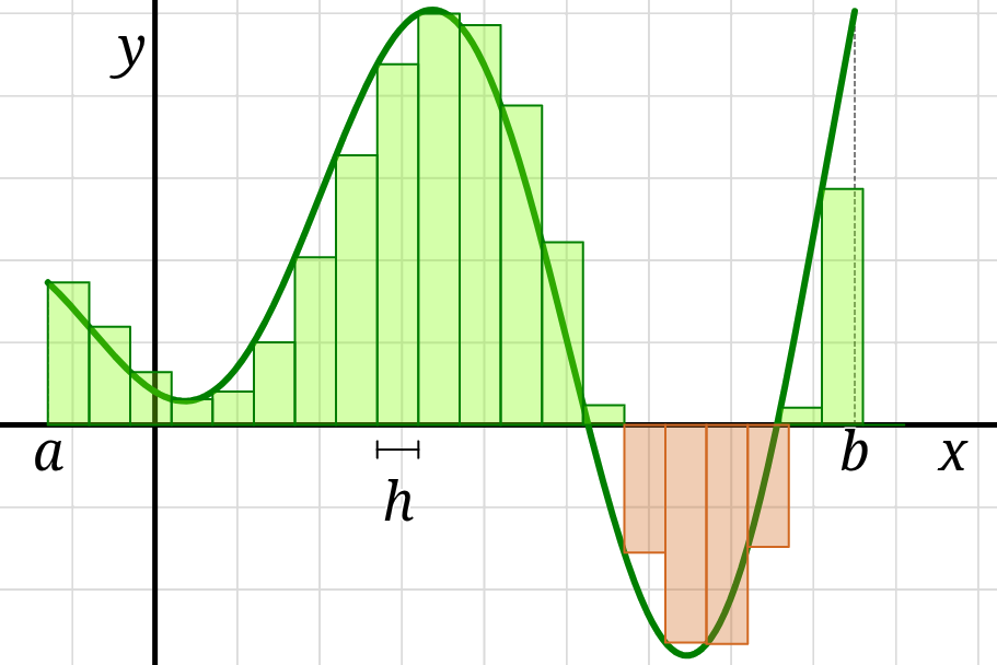 A Riemann sum is a sum of the areas of a collection \(n\) of rectangles,