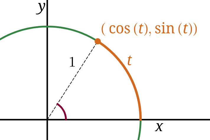 and some arc of length \(t\) along that circle starting on the positive \(x\)-axis,